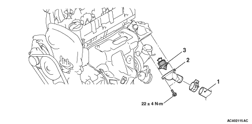 1.Insert radiator lower hose as far as the projection of the cooling water inlet hose fitting.