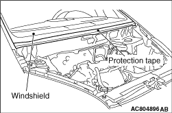 After removing the cowl top panel, attach a protection tape for the windshield on the lower area of the windshield.
