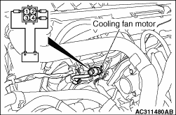 4.If the cooling fan motor is defective, replace it (Refer to ) <Except for 4G1> or (Refer to ) <4G1>.