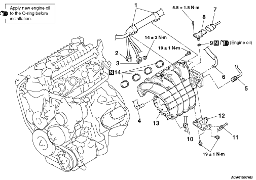 caution Check that the sealing surfaces of the inlet manifold and inlet manifold stay contact securely after temporary tightening.
