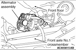 Remove the alternator assembly from between the front floor and the front axle No.1 crossmember.