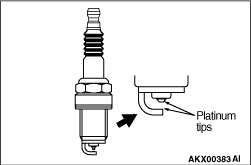 • Do not attempt to clean the platinum plug using a wire brush because it may result in damage to the electrode. When the platinum plug is cleaned, use a plug cleaner, sand blast type, or special tool Spark Plug Brush (MB992273).