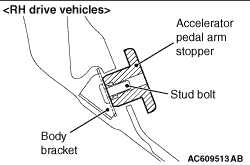 2.Install the accelerator pedal arm stopper securely by turning it clockwise until its underside contacts with the body or body bracket as shown in the figure.