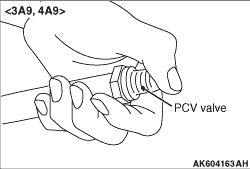 6.If vacuum is not felt, clean the PCV valve or replace it. 7.In case of 3A9 and 4A9 engine only, apply a small amount of new engine oil to the