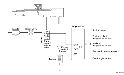 the canister into the inlet manifold through duty cycle control. The engine-ECU or engine-A-M/T-ECU controls the actuation of the purge control solenoid