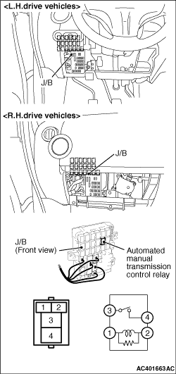 4.If there is a malfunction, replace the automated manual transmission control relay.