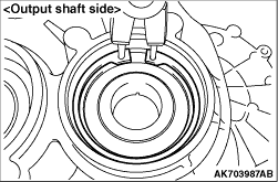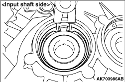 Using the special tool, Snap ring installer (MD998367), remove the input shaft seal and input shaft roller bearing.
