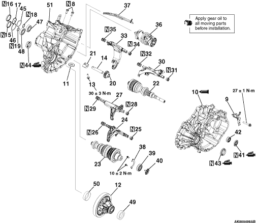 2.Install the shift fork 5/6 assembly as a set to the clutch housing.