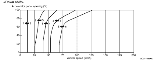 The shifting change point (speed) depends on position of accelerator pedal and vehicle speed.