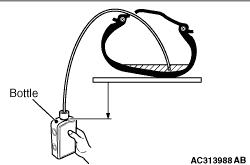 with one end connected to the empty bottle of the repair agent and the other end submerged in