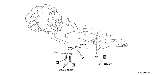 caution *: Indicates parts which should be temporarily tightened, and then fully tightened after placing the vehicle horizontally and loading the full weight of the engine on the vehicle body.