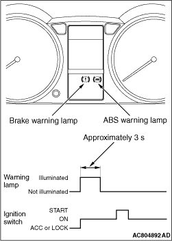 the ABS and brake warning lamp illuminates for approximately 3 seconds* and then goes