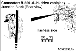 (1)Disconnect the B-229 junction block connector, and then measure the voltage at