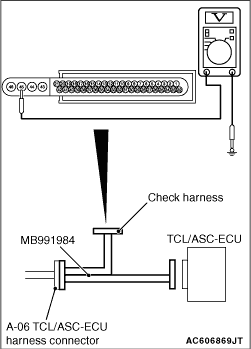 Do not connect the special tool ABS check harness (MB991984) to TCL/ASC-ECU.