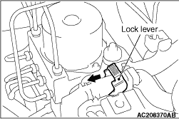 Move the lock lever of the TCL/ASC-ECU connector as shown in the illustration, and then