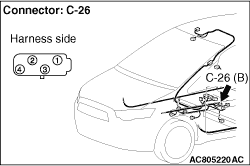 (1)Disconnect the C-26 G and yaw rate sensor connector, and measure at the harness