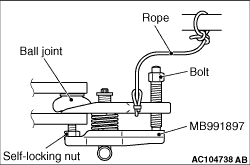 Install the ball joint remover (special tool MB991897) as shown in the figure.