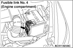 • Harness wire between electric power steering-ECU connector B-105 and fusible link No.4