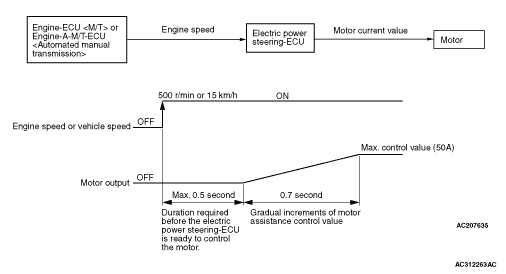 2. The electric power steering-ECU outputs the current in proportion to the torque sensor signal to the motor.