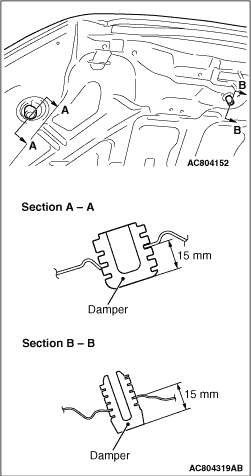 Turn the damper to the shown dimension to adjust the hood height. If the hood height is still not even, turn the damper again until the height is even.