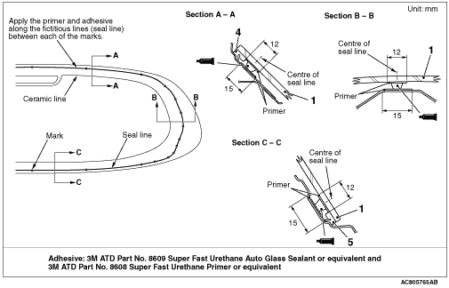 2.Install the tailgate window glass in the same way as for the windshield installation (Refer to ).