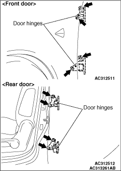 Adjustment by using the striker (toward the outside of the vehicle) Use special tools sliding hammer (MB990211) and body puller (MB990243) to pull the striker