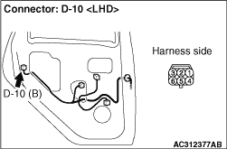 STEP 14. Connector check: D-10 rear door lock actuator (LH) connector