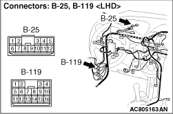 note Prior to the wiring harness inspection, check intermediate connector B-119 and joint connector B-25, and repair if necessary.