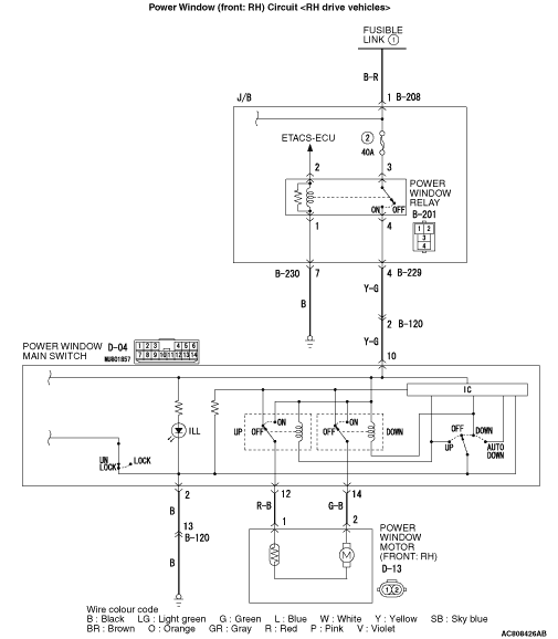 If the driver’s power window does not work by means of the power window main switch, the power window main switch or the driver’s door power window motor may be defective.
