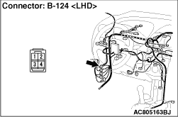 Prior to the wiring harness inspection, check intermediate connectors B-124 and C-14, and repair if necessary.