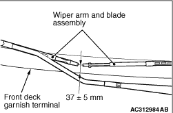 Install the wiper blade at the specified position (standard value). Standard value: 37 ± 5 mm