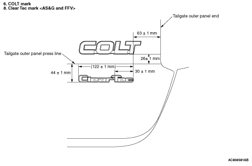 When attaching the marks, the ambient temperature should be 20 - 38°C and the air should be completely free of dust. If the ambient temperature is lower than 20°C, the marks and the places on the vehicle body where the marks are to be attached should be heated to 20 - 30°C.