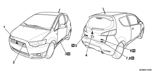 caution When attaching the marks, the ambient temperature should be 20 - 38°C and the air should be completely free of dust. If the ambient temperature is lower than 20°C, the marks and the places on the vehicle body where the marks are to be attached should be heated to 20 - 30°C.
