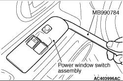 Insert special tool ornament remover (MB990784) as shown to remove the power window switch assembly.