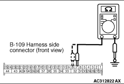 STEP 4. Resistance measurement at the SRS-ECU connector B-109.