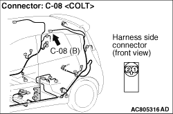 (4)Connect special tool resistor harness (MB991884) to the C-08 harness side connector.