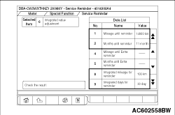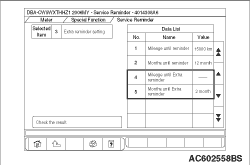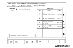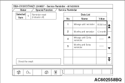 • Be careful not to execute "1 Reminder reset (Indicator off)" again after erasing the service reminder warning indicator which is currently output, because the next warning period will be cancelled.