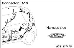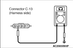 (1)Disconnect fuel pump and gauge unit connector C-13, and measure at the wiring harness side.