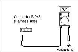 STEP 2. Voltage measurement at key ring antenna connector B-246 <L. H. drive vehicles> or B-239-1 <R. H. drive vehicles>.