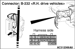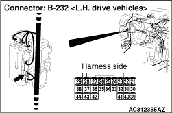 STEP 6. Check the wiring harness between key ring antenna connector B-246 <L. H. drive vehicles> or B-239-1 <R. H. drive vehicles> (terminal 1) and ETACS-ECU connector B-232 (terminal 34).