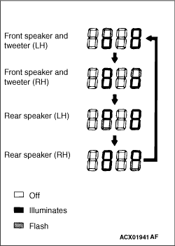 2.Press the following buttons in that order within sixty seconds from step (1). (1) Memory select "1" button (2) "TUNE/SEEK (DOWN)" button (3) "TUNE/SEEK (UP)" button (4) Memory select "6" button |