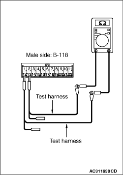 YES <all the resistances measure 2 Ω or less: When no repair done> : It is determined that there is an intermittent malfunction such as poor engaged connector(s) or open circuit (Refer to GROUP 00, How to Cope with Intermittent Malfunction ).