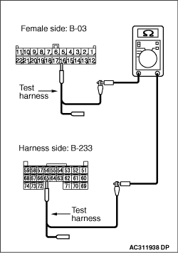 (5)Continuity between B-03 joint connector (CAN1) terminal No.16 and B-233 ETACS-ECU connector terminal No.65