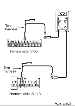 (4)Continuity between B-03 joint connector (CAN1) terminal No.6 and B-113 A/C-ECU connector terminal No.6 <L.H. drive vehicles> OK: 2 ohms or less