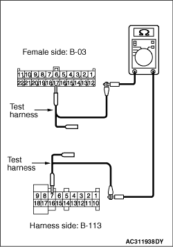 (5)Continuity between B-03 joint connector (CAN1) terminal No.17 and B-113 A/C-ECU connector terminal No.7 <L.H. drive vehicles> OK: 2 ohms or less