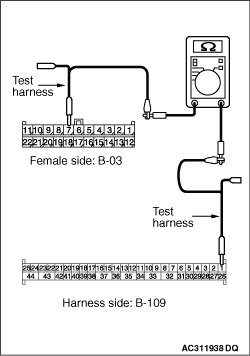 (5)Continuity between B-03 joint connector (CAN1) terminal No.18 and B-109 SRS-ECU connector terminal No.26 OK: 2 ohms or less