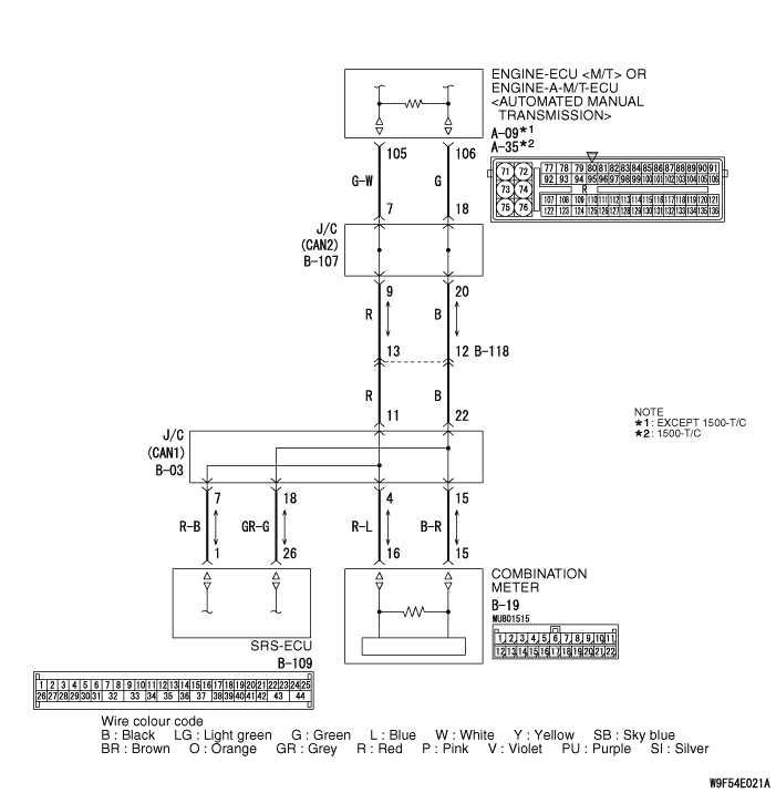 (1)Disconnect the joint connector (CAN1) and the SRS-ECU connector, and measure at the wiring harness side. (2)Ignition switch: OFF (LOCK) (3)