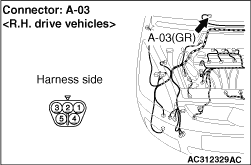 STEP 3. Connector check: A-03 windshield wiper motor connector
