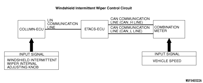 The ETACS-ECU calculates the intermittent wiper interval according to the vehicle speed signal which is sent by the combination meter.