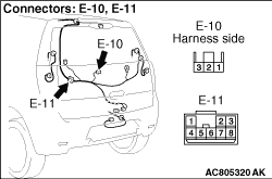 STEP 4. Connector check: E-10 rear wiper motor connector